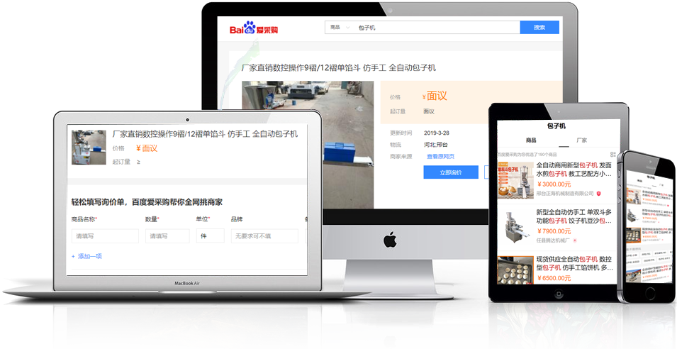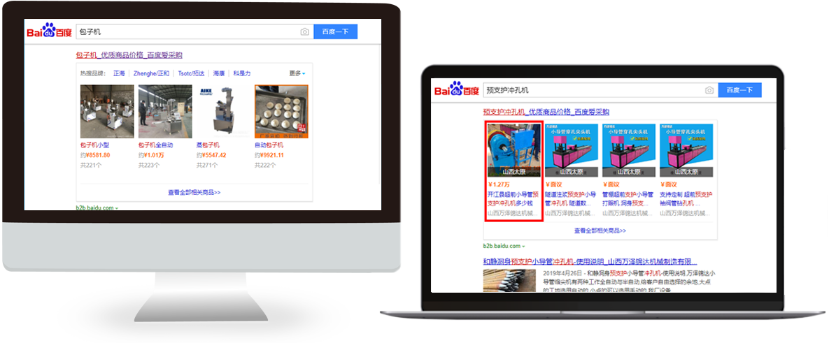 百度電腦端、移動端以及百度愛采購版塊增加曝光展示機會,獲取大量詢盤與訂單。